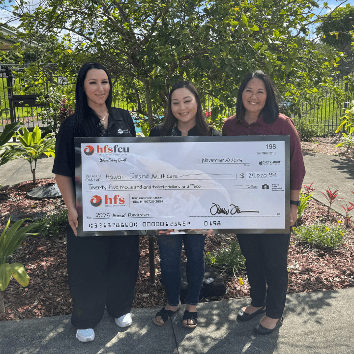 When we come together as a community, beautiful things happen. Throughout October, monetary donations were collected at all six branch locations. Mahalo to the generosity and support of our members, community, and staff – together we raised $25,020. The funds raised will help support Hawai’i Island Adult Care’s “Kūpuna in Need” program, a vital lifeline for Hawai’i Island families who need it most.